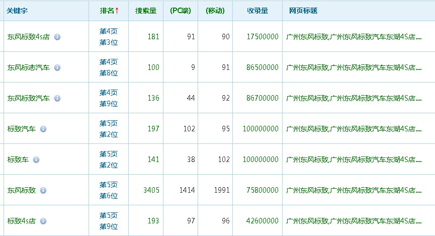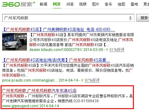 贈送關鍵詞“廣州標致4S店”排名百度第四位